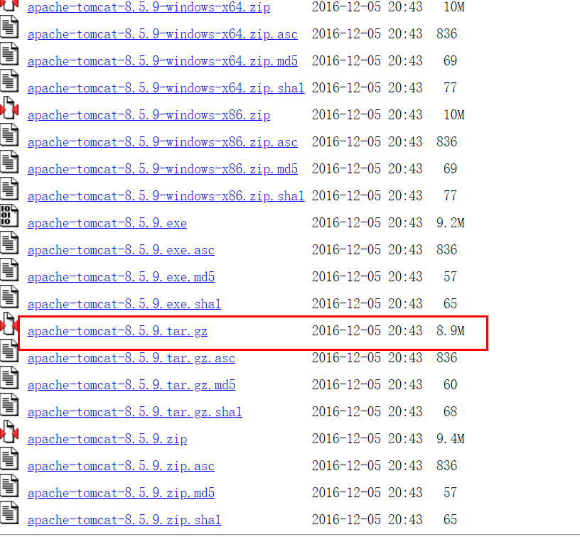 1 上官网下载tomcat,地址 https://archive.apache.org/dist/tomcat/tomcat-8/v8.5.9/bin